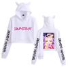 Nowa bluza z kapturem z nadrukiem Demon Hunters KPop Moda damska Jesień Zima Pulower Dziewczęca Urocza bluza z uszami kota Crop topy