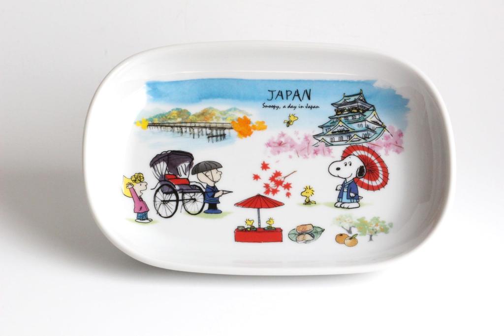 This versatile plate is large enough to be used as a side dish, grilled dish, or breakfast plate. Its oval shape saves space in your cupboard or on the table, making your food look stunning. Dimensions: 18.5 x 12.7 x 2.5 cm (H). Weight: 260 g. Material: Porcelain (Mino ware). © 2024 Peanuts Worldwide LLC