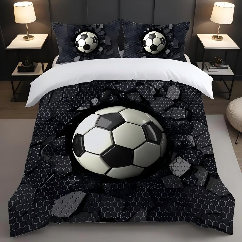 Football Impact Cementowa Ściana Sześciokątny Nadruk Zgnieciony Przez Uderzenie Kołdra Poliestrowa Wygodna Poszwa na Kołdrę w Stylu Efektów Wizualnych 3D