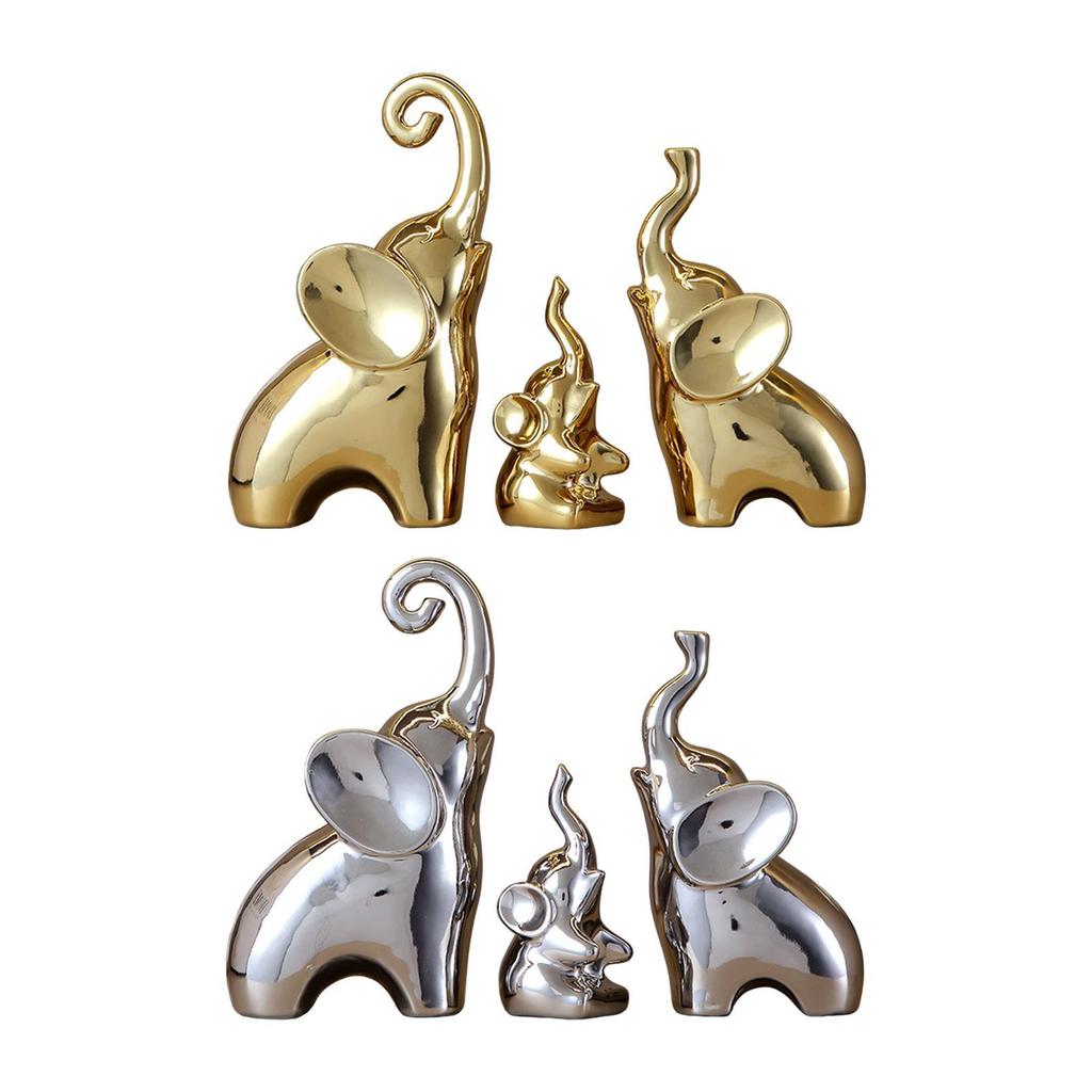 3 szt. Statuetki Słoni Rodzina Słoni Figurki, Nowoczesne Kolekcjonerskie Dekoracje Biurka, Rzeźby Zwierząt na Biurko