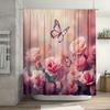 Jy01Pink Roses Flowers And Butterflies Shower Curtain Print Modern Nordic Minimalist Polyster Home Decor Bathroom Curtain With@1