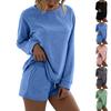 Nowy Damski Koszula z Długim Rękawem Szorty Sweter w Paski Casualowy Zestaw Dwuczęściowy