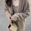 Grey medium length knee length sweater for women's spring autumn and winter thick knitted cardigan sweater jacket