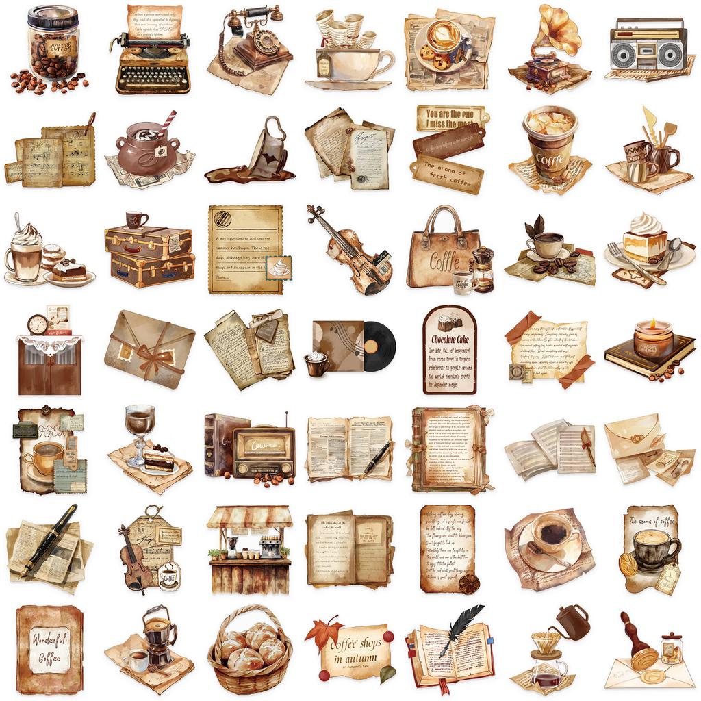 Retro Naklejki 50szt. Kreatywny Estetyczny Zestaw Naklejek na Telefony Komórkowe, Dzienniki, Bagaż, Notatniki, Kubki na Wodę na Festiwale, Imprezy i Urodziny