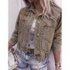 Damska kurtka dżinsowa na wiosnę/jesień z długim rękawem i kołnierzykiem, krótka kurtka