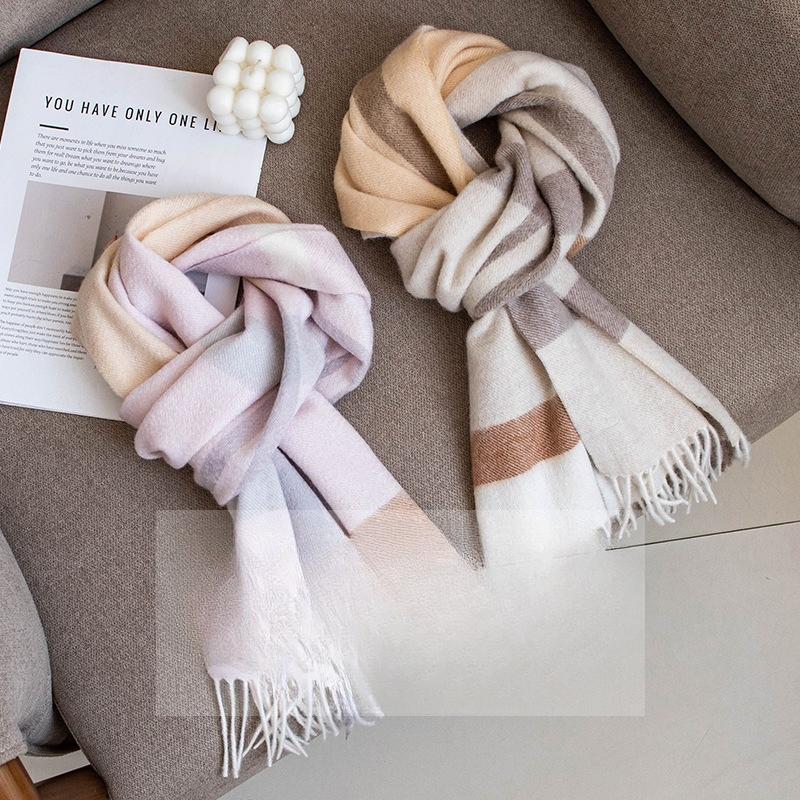 Pure Cashmere Scarf Plaid Women's Autumn and Winter Couple Style Warm Narrow Version Foreign Style Versatile Light Color Scarf