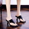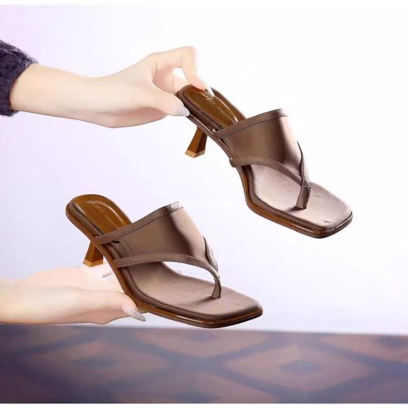 High Heels Women Square Toe Slippers Clip Toe Sandals Sexy Party Shoes Trend Woman Flip Flops 2025 New Summer Brand Pumps Mujer