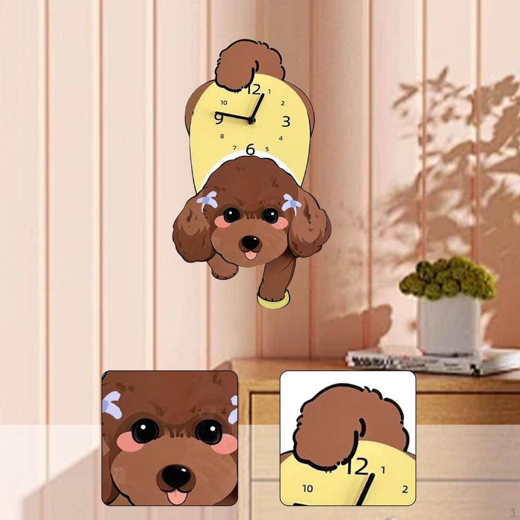 - 【Uroczy wzór psa】: Zegar ścienny przedstawia uroczego kreskówkowego psa z kołyszącymi się łapami, które poruszają się na boki, dodając zabawny i serdeczny akcent do każdego pomieszczenia.
