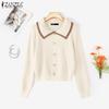 ZANZEA Women Casual Lapel Neck Long Sleeve Stitching Loose Knitted Cardigans Coats