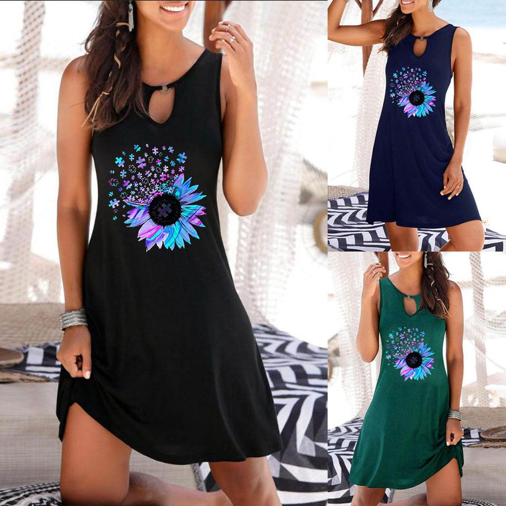 Damskie letnie sukienki Sukienka letnia Casualowa sukienka plażowa bez rękawów Boho Print