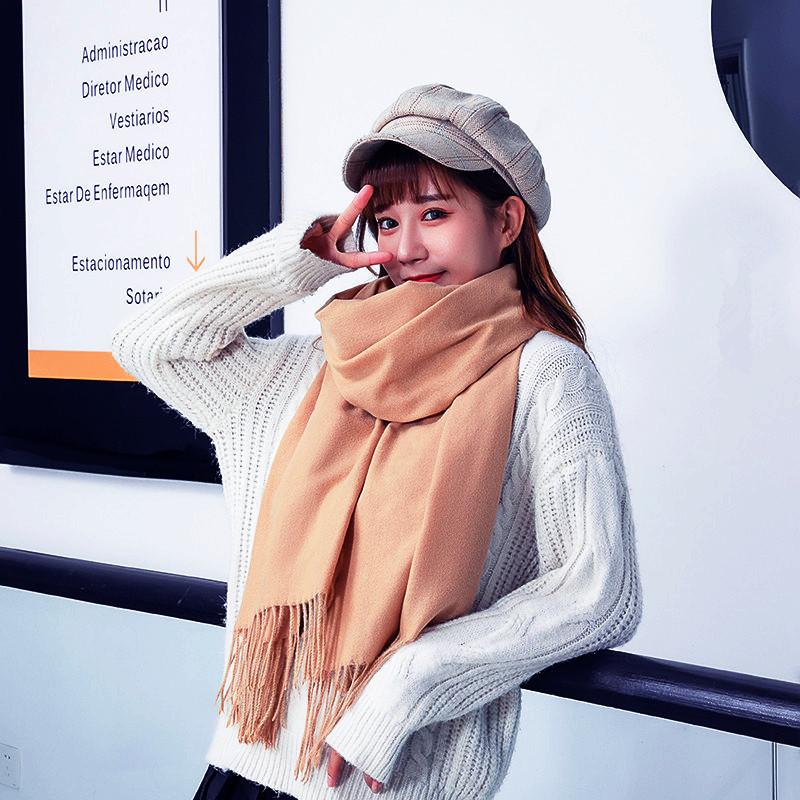 Red Scarf Women's Autumn and Winter Camel Tassel Warm Wool Cashmere Scarf Winter Long Imitation Cashmere Scarf