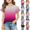 Letni Uroczy i Casualowy Modny Dziewczęcy Top z Krótkim Rękawem i Dekoltem V w Kolorze Gradientowym