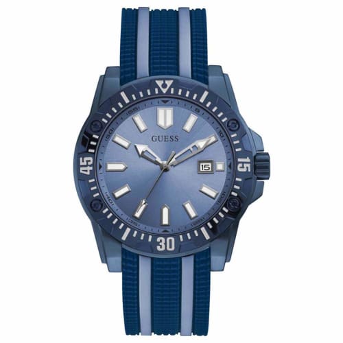 Description Product Introduction A marine-look watch featuring a date display and a silicone strap with two-tone stripes. Brand Introduction The GUESS brand began when the Marciano brothers moved to the United States from southern France in search of the American dream. In 1981, they founded GUESS? Inc. in Los Angeles, California, and proposed innovative jeans that combined traditional American fabrics with European style. The concept of GUESS is "YOUNG, SEXY, ADVENTUROUS". The brand spirit has continued to captivate people for decades through iconic and timeless advertising campaigns. Since this advertising campaign, GUESS has produced many top models and is now the gateway to becoming a famous model. Today, GUESS has grown into a global lifestyle brand that operates in 90 countries around the world and covers everything from apparel to bags, shoes, watches, accessories, and eyewear. Among them, GUESS watches started in 1983 and are now sold in over 20,000 stores in over 100 countries around the world. New, highly designed watches introduced every season continue to be supported by fashion-conscious users around the world.