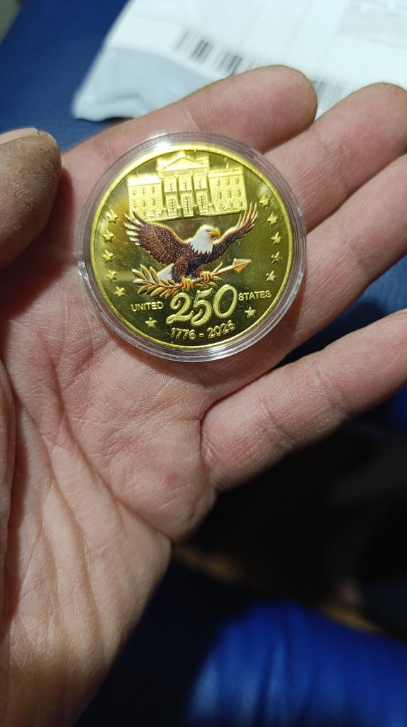 Metalowy medalion z reliefem z okazji 250. rocznicy Stanów Zjednoczonych z kolorowym nadrukiem
