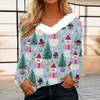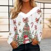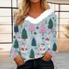 Women's Fashion Long Sleeve Christmas V-Neck Printed Party Furry Top