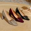 Thick heel French high heels red wedding shoes 2025 new autumn women's shoes bow patent leather square head shallow mouth single shoes