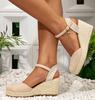 LIHUAMA zamszowe koturny okrągły nosek pasek na kostkę wysoki obcas sandały buty damskie espadryle czółenka komfortowe codzienne sandały impreza