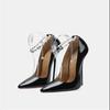 Nowe 16cm Ekstremalne Wysokie Obcasy Projekt Mody Szpilki Fetysz Błyszczące Perłowe Paski na Kostkę Czółenka Cross Dresse Man