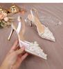 2025 Białe Buty Ślubne Buty Druhny Damskie Koronkowe Buty Modne Wysokie Obcasy Perłowe Czółenka