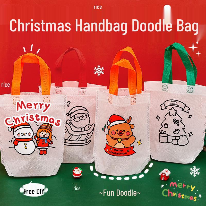 Ręcznie malowana torba tote z graffiti świątecznym DIY - Dziecięca włókninowa torba na prezenty