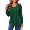 1. Ta damska bluzka z długim rękawem ma dekolt w serek, który korzystnie podkreśla sylwetkę, oraz eleganckie plisy, idealne do dodania odrobiny wyrafinowania każdej swobodnej stylizacji.