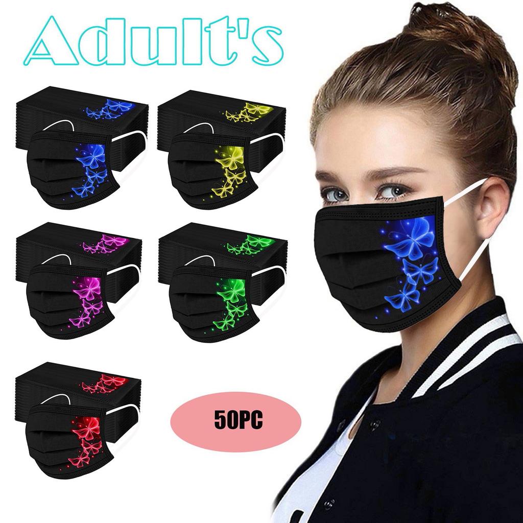 50 szt. Maska dla dorosłych z nadrukiem motyla Jednorazowa ochronna na twarz