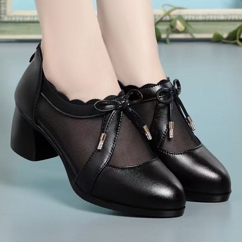2025 lato pojedyncze buty sandały damskie średni obcas gruby obcas ażurowe buty z siateczki przędza siatkowa buty dla matek w średnim i starszym wieku damskie sh