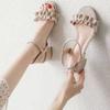 Sandals Women's Summer 2025 New Medium Heel Coarse Heel Versatile One-word Button Women's Shoes Fairy Style with Skirt Fashion Women's Shoes Tide