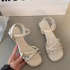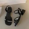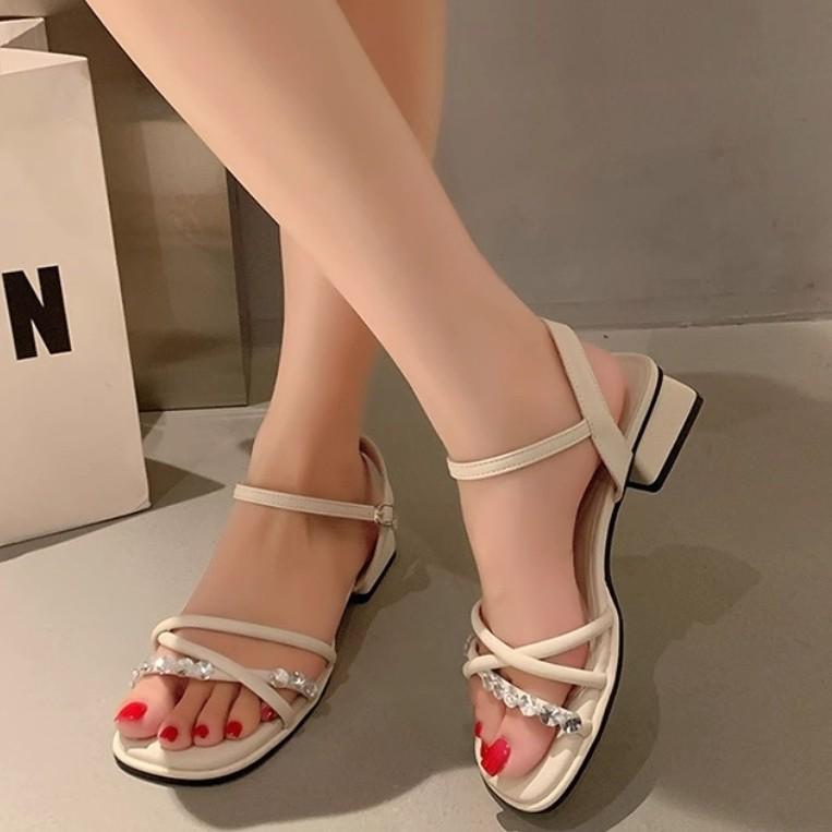 2025 new French high-heeled medium-heeled sandals women's summer shoes with rhinestone thick heels and skirts fairy sandals
