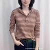 Striped Long-sleeved T-shirt for Women's Loose Versatile Hooded Sweatshirt Base Shirt Fashionable Top
