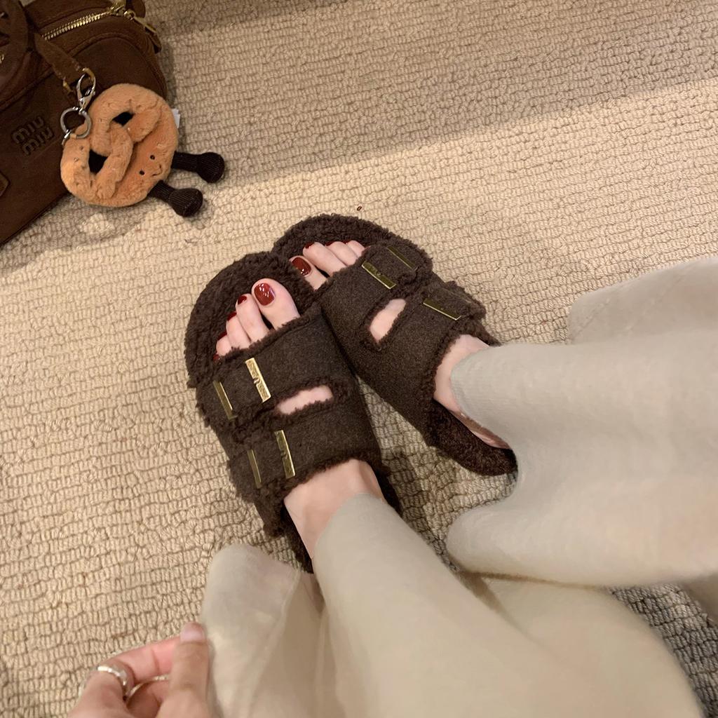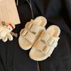Leniwe jednopaskowe klapki z miękką podeszwą Boken filcowe grube podeszwy puszyste klapki Boken damskie jesienno-zimowe