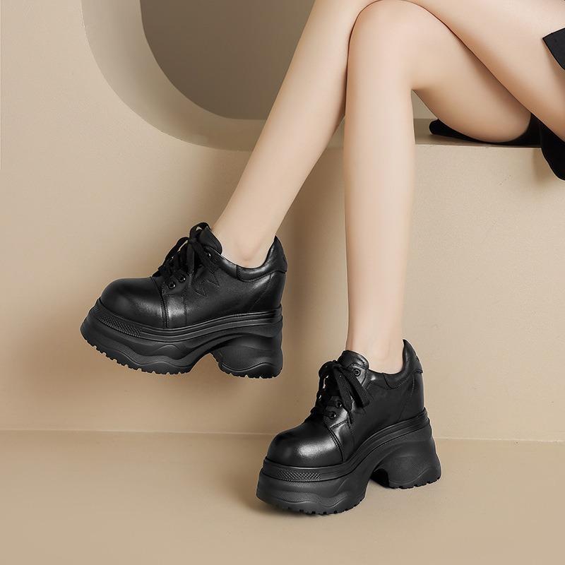 12Cm inner height increase round head leather lace-up single shoes women's spring and autumn waterproof table thick sole hate sky high muffin high he