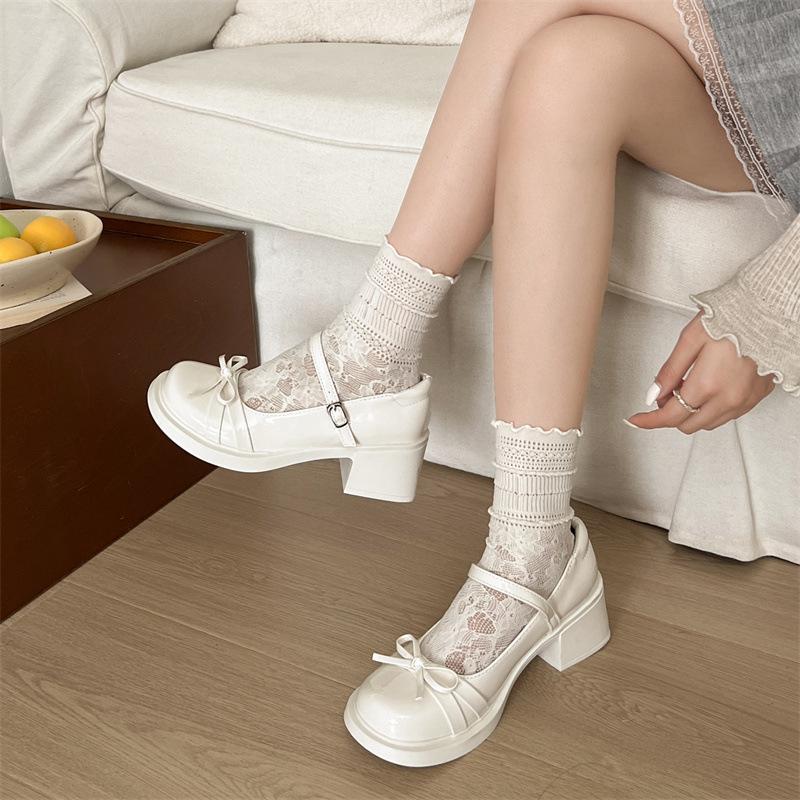 Białe francuskie retro grube wysokie obcasy płytkie buty damskie 2025 nowe lato ze spódnicą kokarda buty Mary Jane