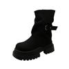 Retro platform knight boots women's foreign style outer wear 2025 autumn new Korean version one-pedal round head platform short boots