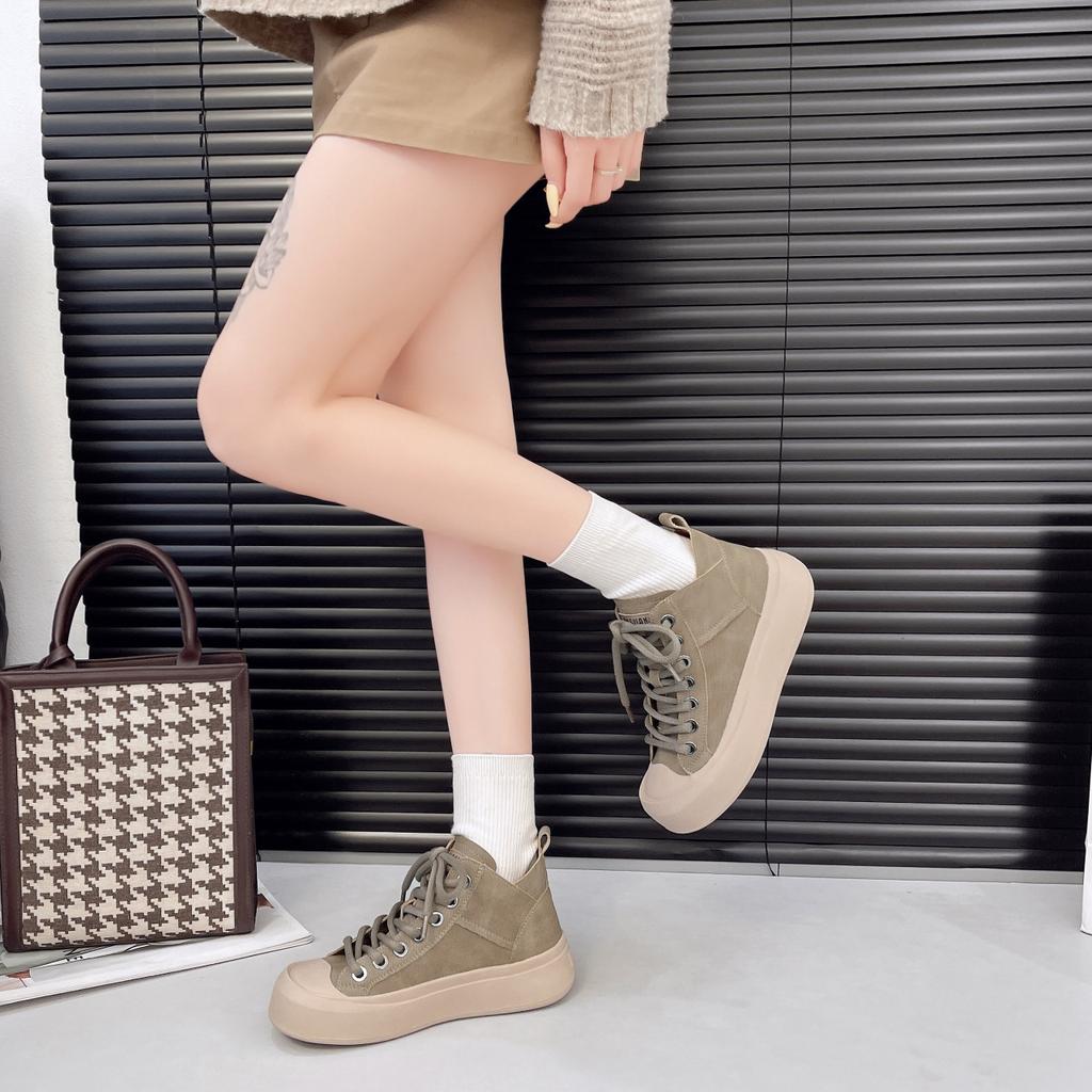Yueyu leather wear-resistant high-top shoes women's 2025 autumn new retro soft-soled women's shoes versatile sports and leisure board shoes