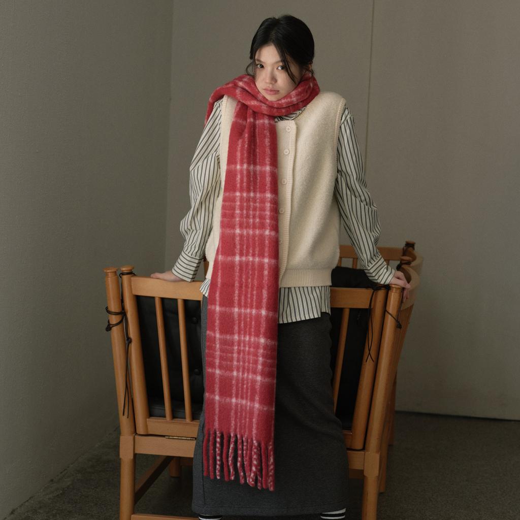 Wool Retro Ankora Red Plaid Scarf Women's Winter Atmosphere Woolen Scarf Korean Version