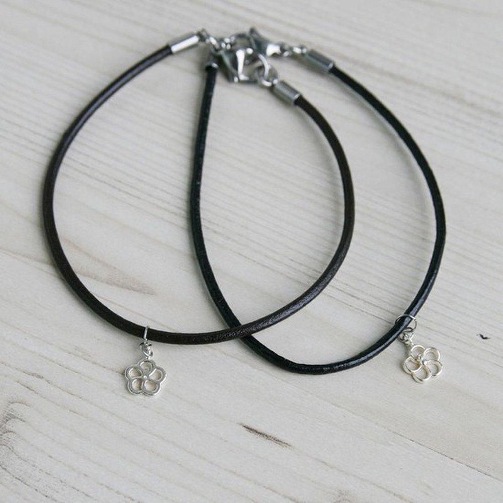 Bransoletka z nieskończonej skóry cielęcej Srebro 925, Bransoletka skórzana z zawieszką Róża Sharon, Bransoletka ze skóry cielęcej, Prezent na Dzień Rodziców w Korei