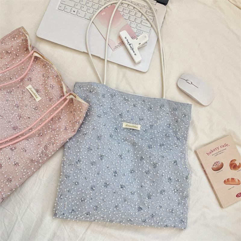 5 Pearl mesh bag new sweet shoulder handbag summer large capacity canvas bag