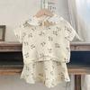 Koreański Styl Zestaw Ubrań Dziecięcych Bawełniany T-shirt z Krótkim Rękawem i Nadrukiem+Szorty Garnitur Ubrań dla Nowonarodzonych Dziewczynek na Lato