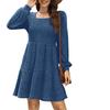 Damska sukienka jesienna z kwadratowym dekoltem i długim rękawem, casualowa sukienka sweterkowa
