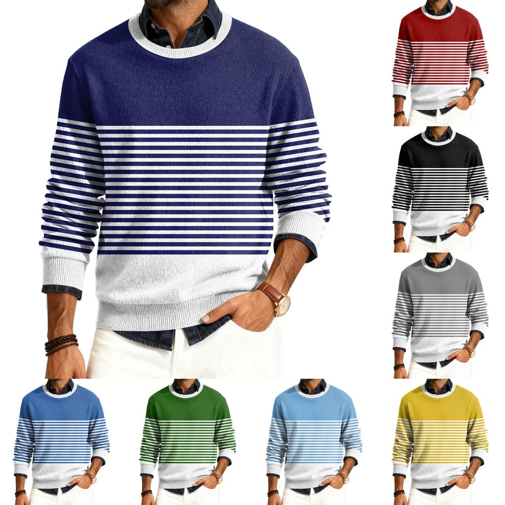 Męski sweter z okrągłym dekoltem, długim rękawem i prążkowanej dzianiny