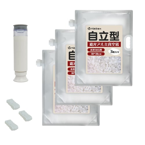 Y K YUKO Fuko's vacuum storage bags were born out of the desire to keep rice fresher and more carefully. The light blocking properties and vacuum structure prevent oxidation and insect damage, preserving the deliciousness of your precious rice for a long time. It is free-standing with a handle, easy to handle, and offers sustainable storage that can be used repeatedly.
