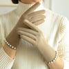 Kobiety Moda Eleganckie Retro Perłowe Rękawiczki Zima Jazda na Rowerze Jazda Pogrubione Ochronne Ciepłe Miękkie Nie Napompowane Rękawiczki z Ekranem Dotykowym