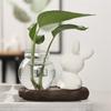 Przezroczysty szklany wazon wodny Ceramika Królik Hydroponiczne wazony na rośliny z drewnianą podstawą Butelka na kwiaty Dekoracja stołu