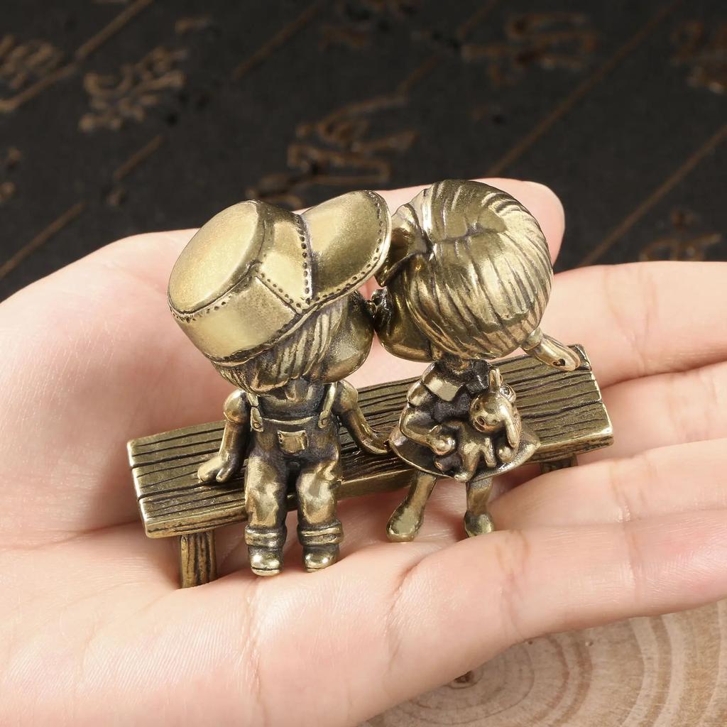 Urocze Ozdoby z Mosiądzu dla Dziecięcych Sympatii Chłopiec Dziewczynka Mały Stołek Metalowe Figurki Dekoracje do Sypialni Walentynkowe Prezenty Miłości