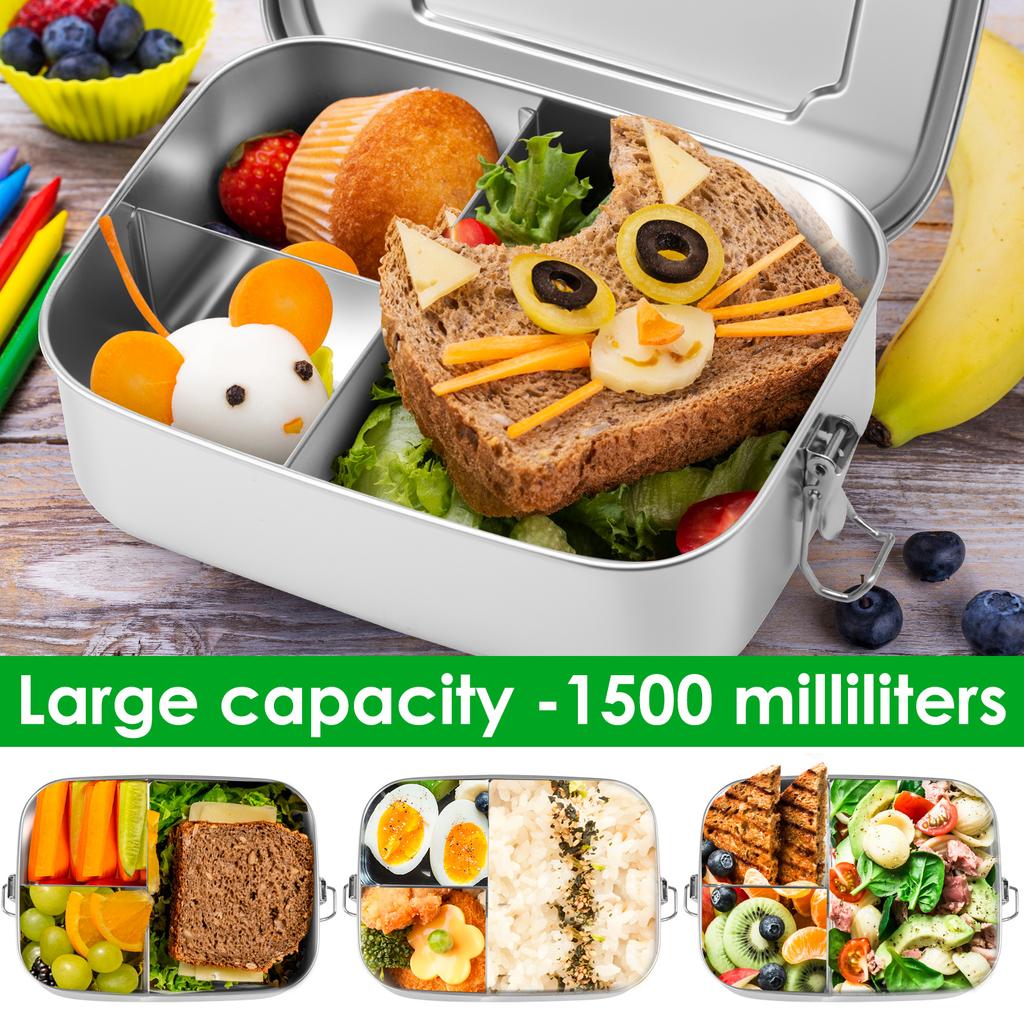 Stainless Steel Bento Box Metal Lunch Box Food Storage Containers 1500ML 3 Compartment Lunch Snack Boxes for School Office