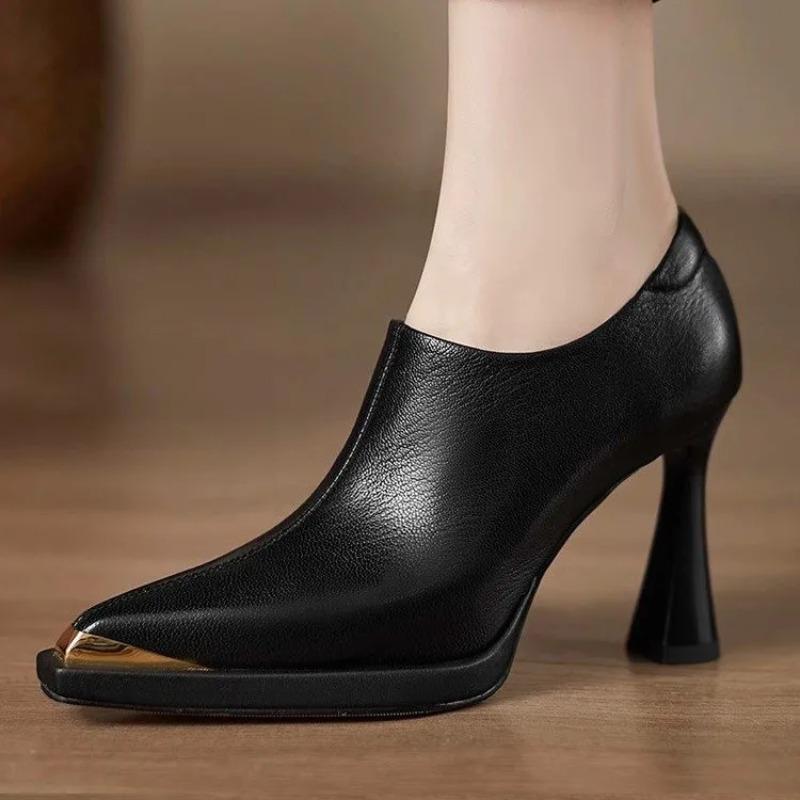 Damskie Buty na Wysokim Obcasie Luksusowa Skóra Szpiczaste Pojedyncze Buty Modne Eleganckie Szpilki z Bocznym Zamkiem Głębokie Wycięcie Wysokie Obcasy dla Pań
