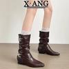 Cowhide version brown pile boots women's western cowboy boots autumn new thick heel knight boots Martin boots