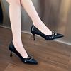 Fashion Rivets Metal Buckle High Heels Summer New Pointed Head Shallow Mouth Set Foot Anti-slip Wear-resistant Single Shoes