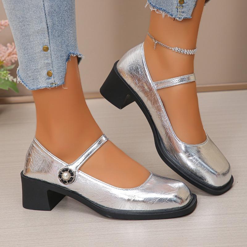 Kwadratowa klamra Grube obcasy Damskie buty Lato Nowe Damskie Modne Wszechstronne Płytkie Buty Eleganckie Proste Wysokie Obcasy